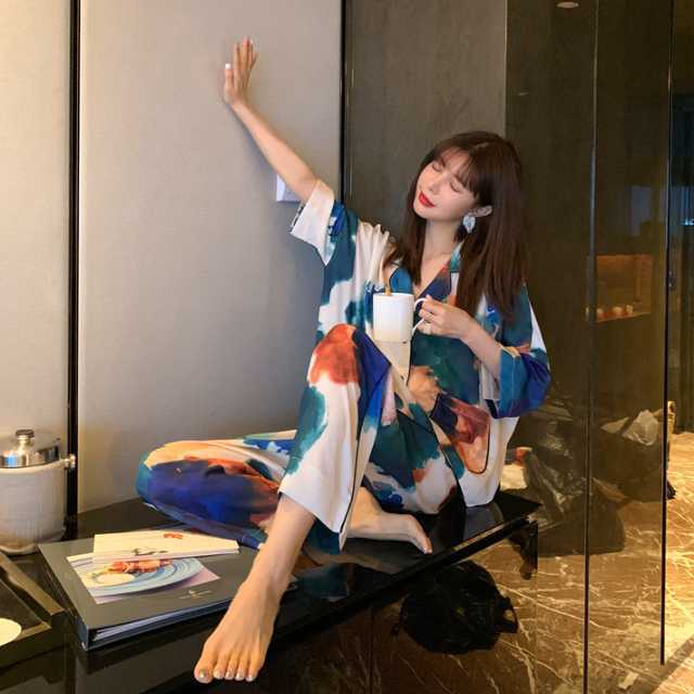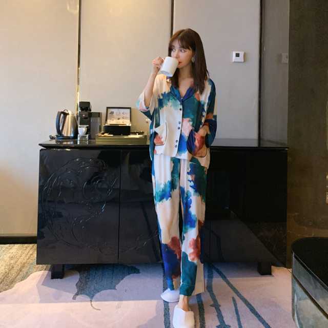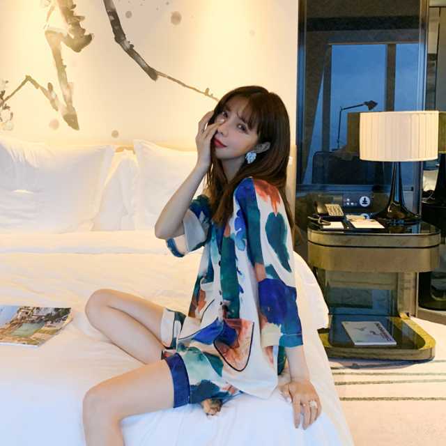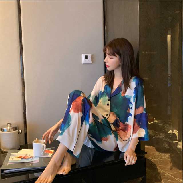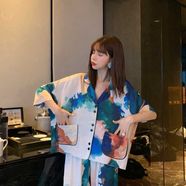 ルームウェア パジャマ 半袖 レディース ナイトウェア 上品 春 夏 秋 上下セット 模様 おしゃれ 長ズボン 半ズボン Vネック 前開き 部屋着 寝間着 寝巻き 涼しい セットアップ キレセク