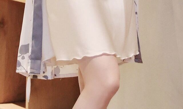 ローブは閉じてリボンを結ぶとワンピースのように。