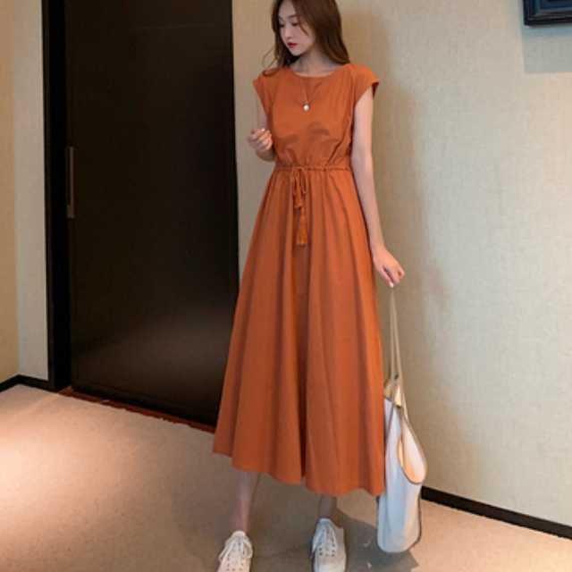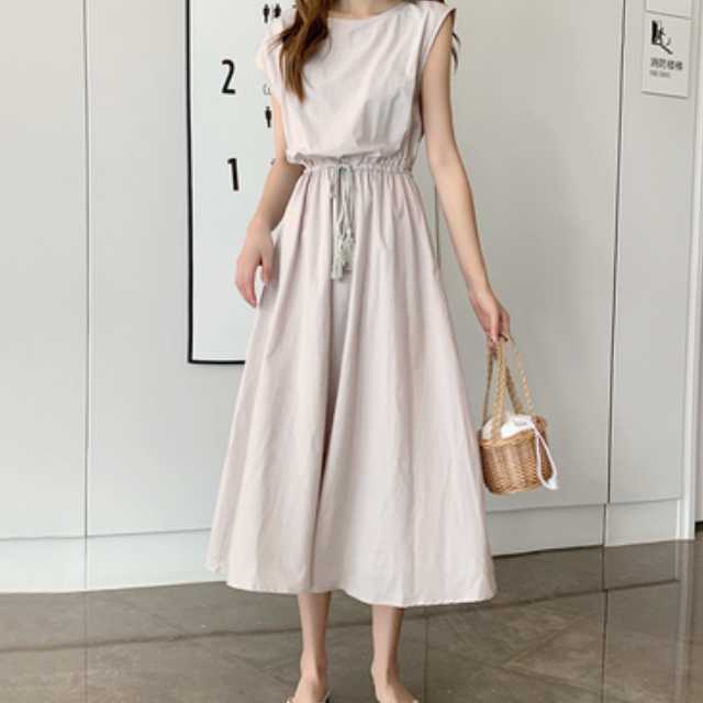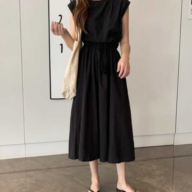ギャザーの入ったウエストマークでスッキリとした印象を与えるロングワンピース♪