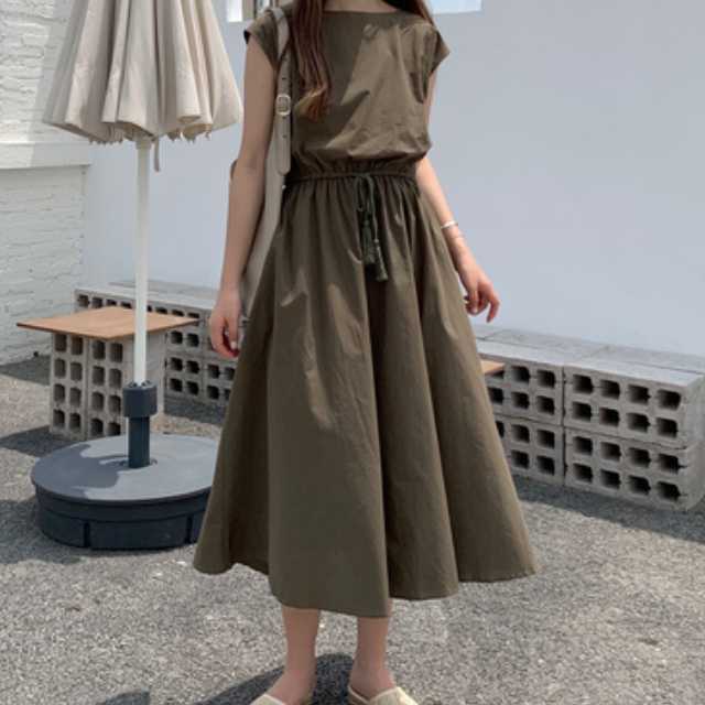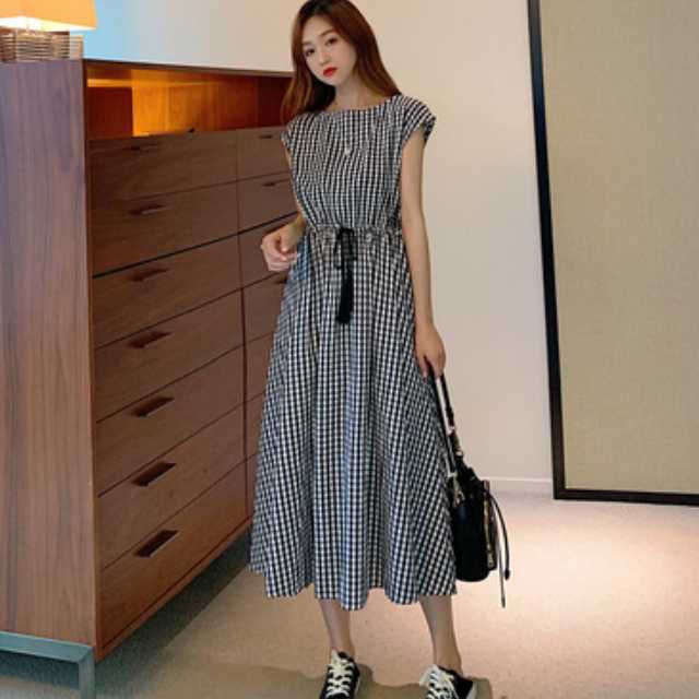 ワンピース Aラインワンピース ウエストゴム ロングワンピース シャーリング Aラインワンピ ノースリーブ ワンピース ロング丈 ノースリーブ 春 夏 半袖 チェック柄 マキシ丈 キレセク