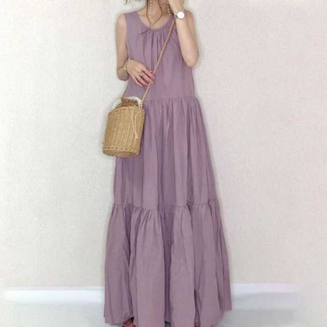 ワンピース ティアードワンピース ノースリーブワンピース ロングワンピース Vネック ワンピ 夏 ワンピース ティアードワンピ ロング フレア ノースリーブ ゆったり キレセク