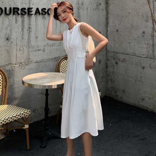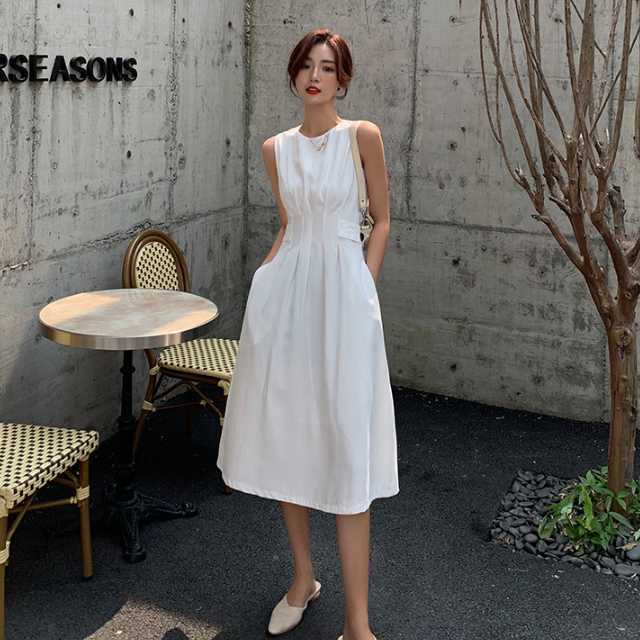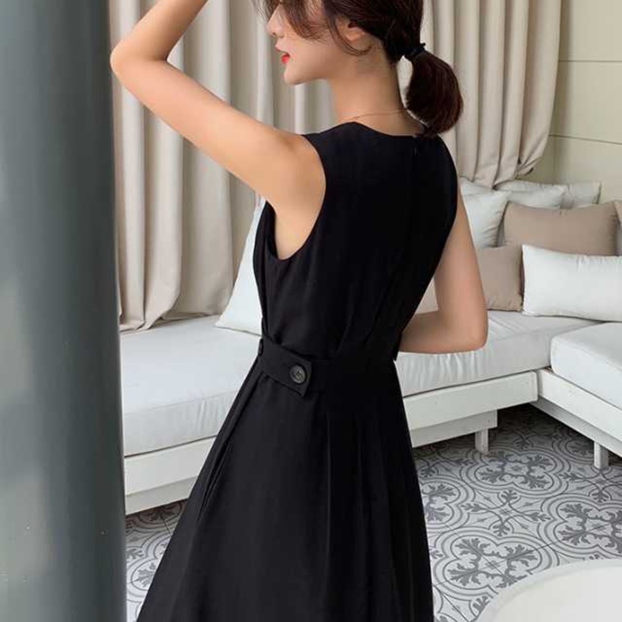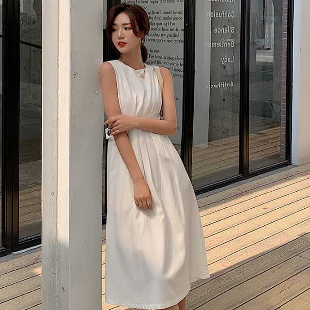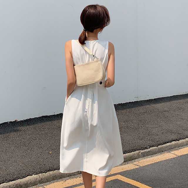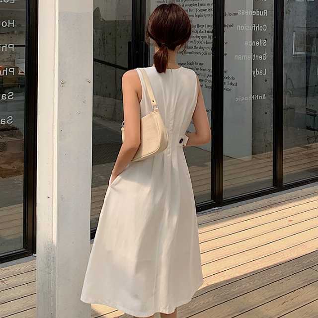 ワンピース Aラインワンピース フレンチワンピース ウエストマーク ウエストボタン 丸襟 ノースリーブ ミディアムワンピース ミディアムワンピ ミディアム丈ワンピース ボタン 清楚 ナチュラル キレセク