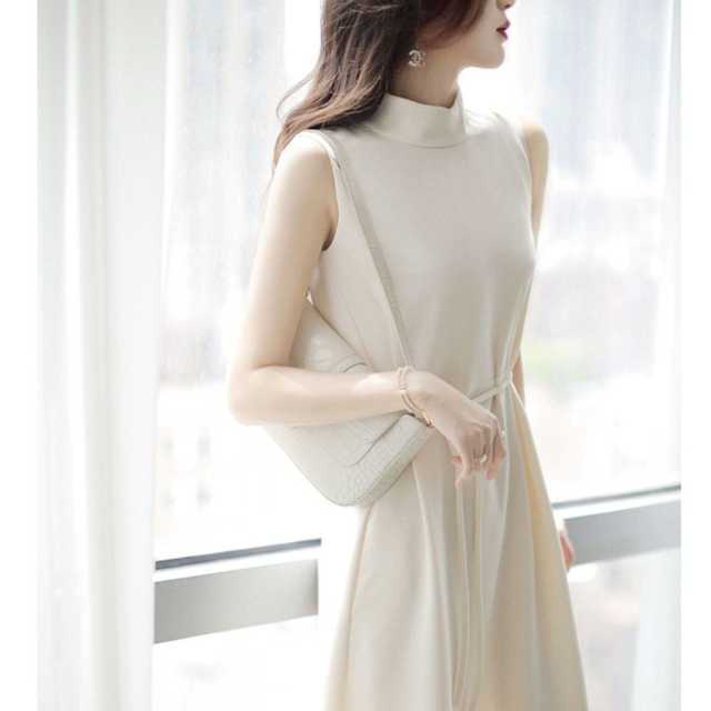ワンピース ミディアムワンピース Aラインワンピース マキシワンピース ミディアムワンピ ハイネック ハーフネックワンピース ウエストマーク ワンピ ミディアム マキシ シンプル 清楚 大きいサイズ キレセク