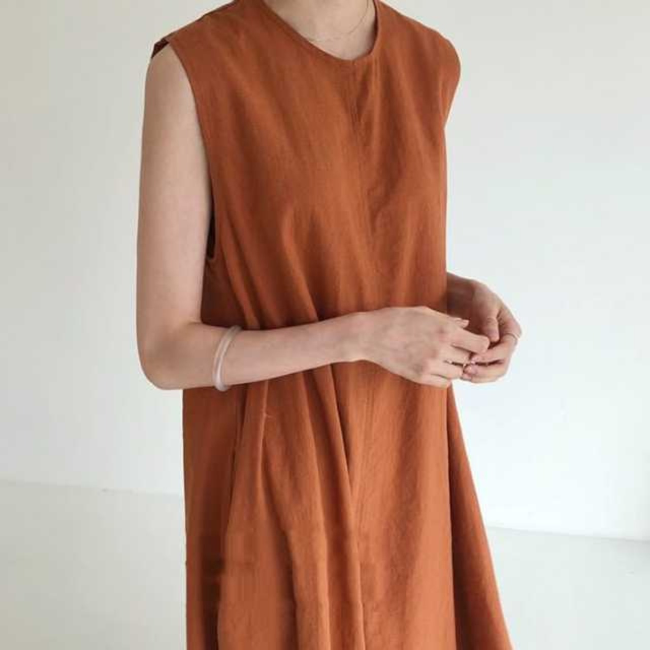ナチュラルな風合いが魅力的な素朴な生地のロングワンピース♪