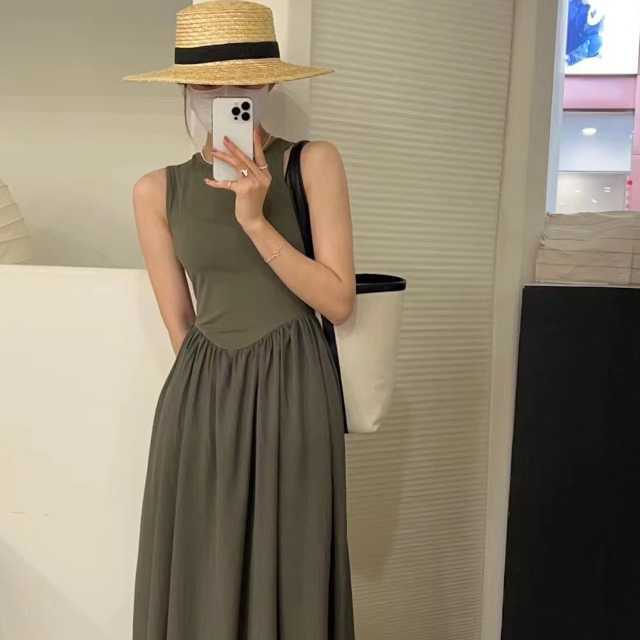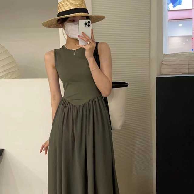 ワンピース ロングワンピース ロングワンピ マキシワンピース マキシワンピ ウエストマーク ノースリーブ フレアスカート マキシ 涼しい 春 夏 秋 大人可愛い きれいめ キレセク