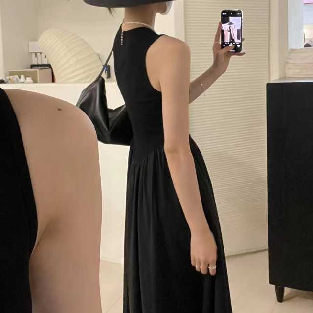 開きすぎない襟ぐり&ノースリーブがクール&フェミニンな印象のロングワンピース♪