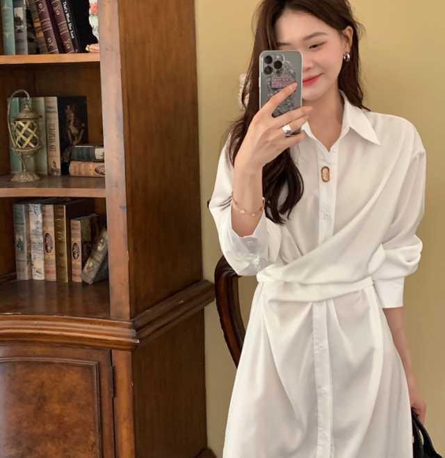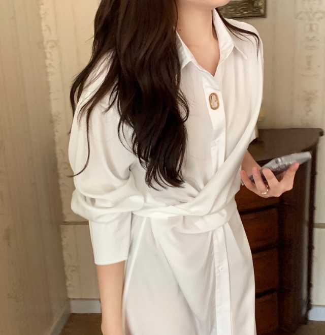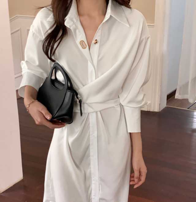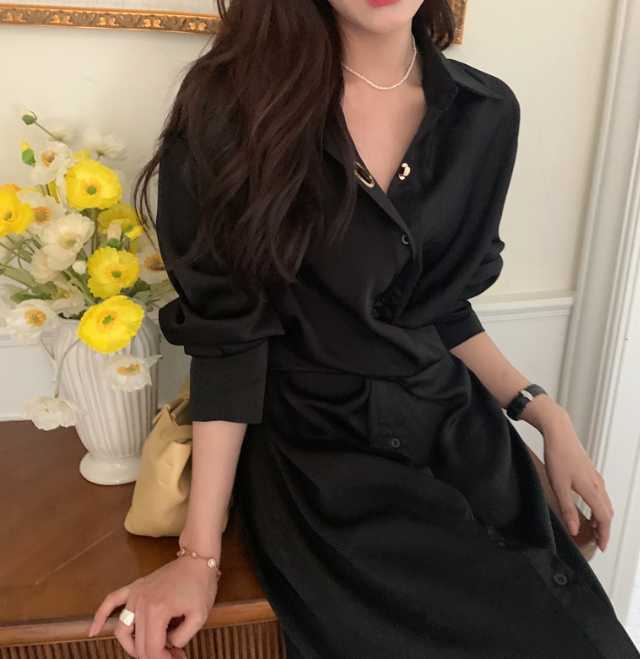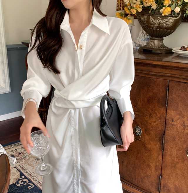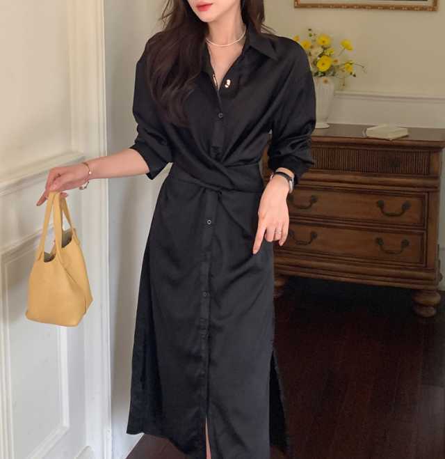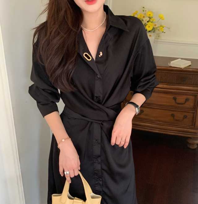 艶感のある素材が高級感を感じさせるシャツワンピース♪