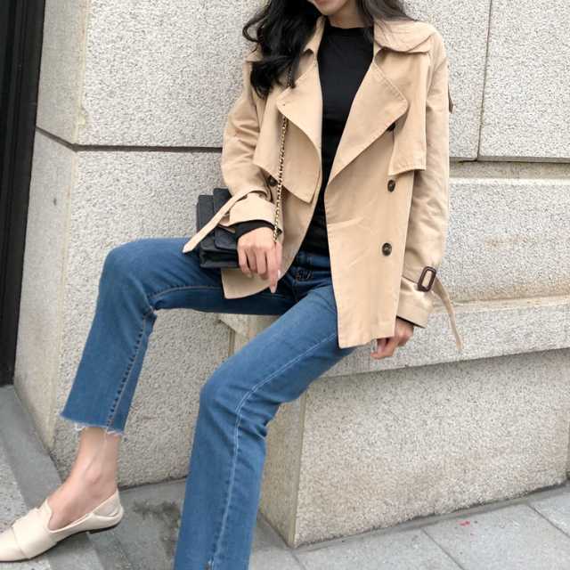 大き目の襟が小顔効果を演出。ショート丈は足長効果も期待できます。