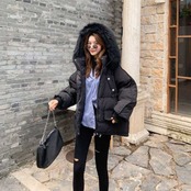 大きなファーフードが華やかな印象を与えるダウンジャケット♪