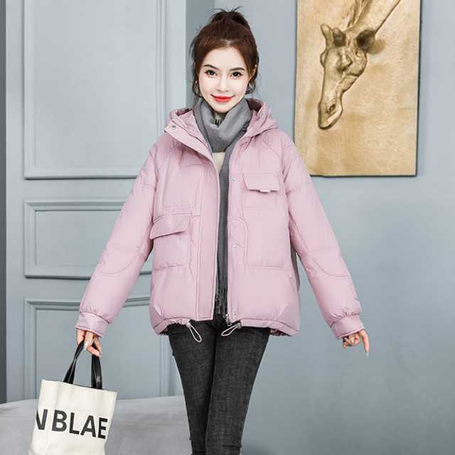 たっぷりとした大きめフードがキュートなダウンジャケット♪