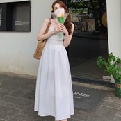 今季トレンドのAライン&フレアシルエットと、上品なキャミソールデザインが絶妙にマッチした、可愛らしくも上品な一着。