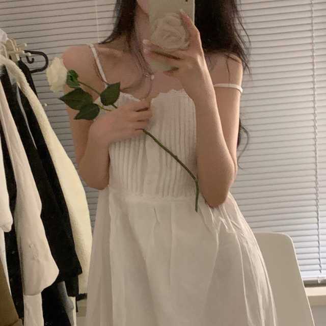 細目で繊細なストラップが華奢な印象を感じさせるキャミソールワンピースです♪